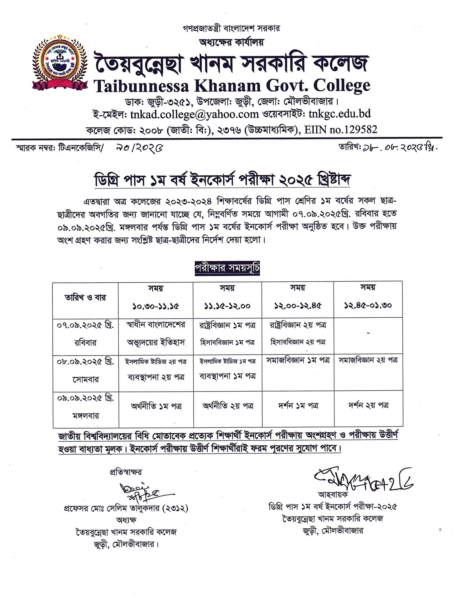 তৈয়বুন্নেছা খানম সরকারি কলেজে আপনাকে স্বাগতম।
